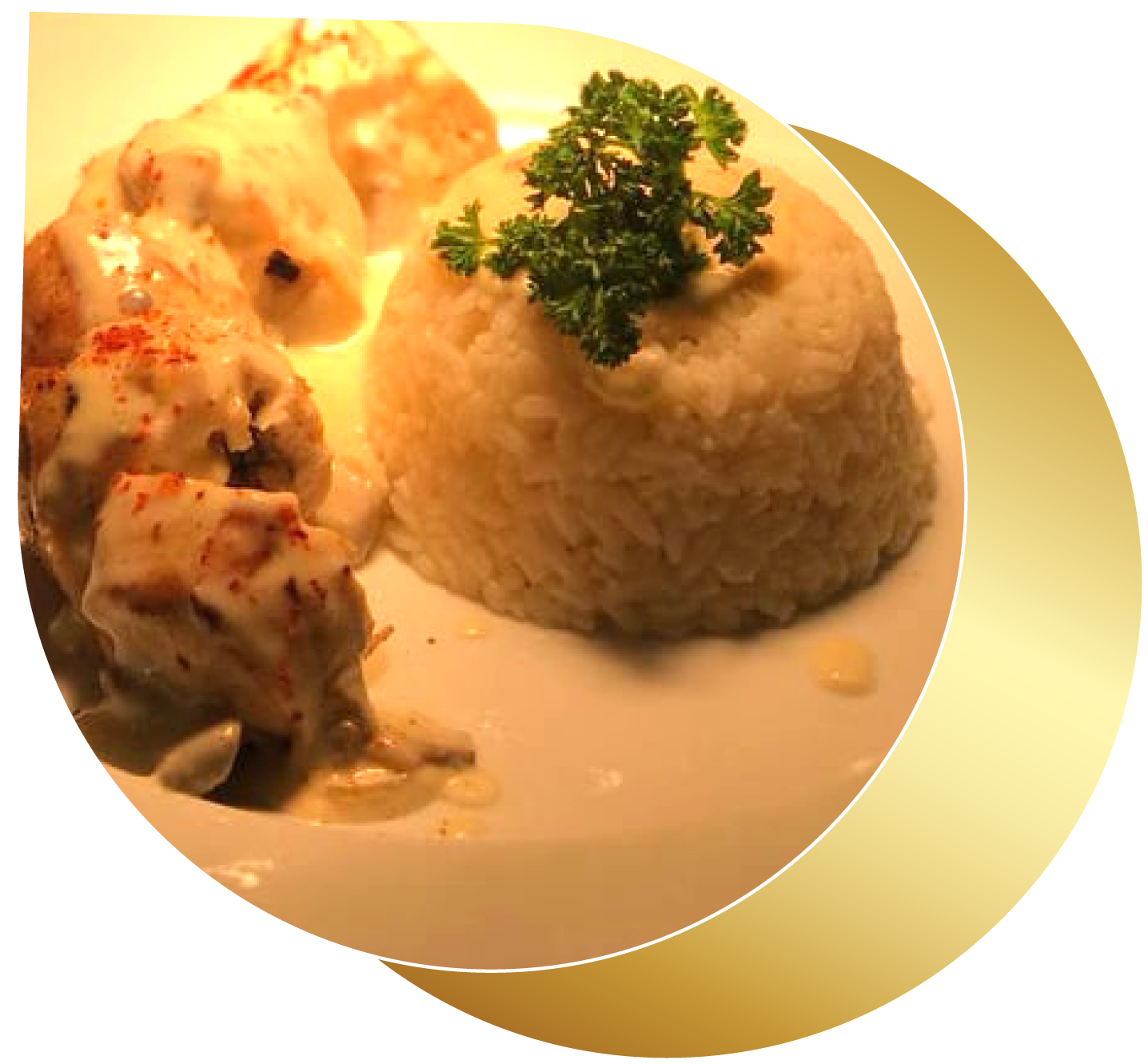 Suprême de poulet, crème de champignon.