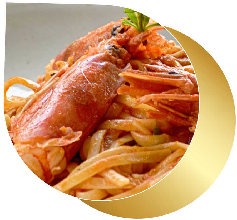 Linguines aux crevettes sauce tomate basilic frais et piment d’Espelette.